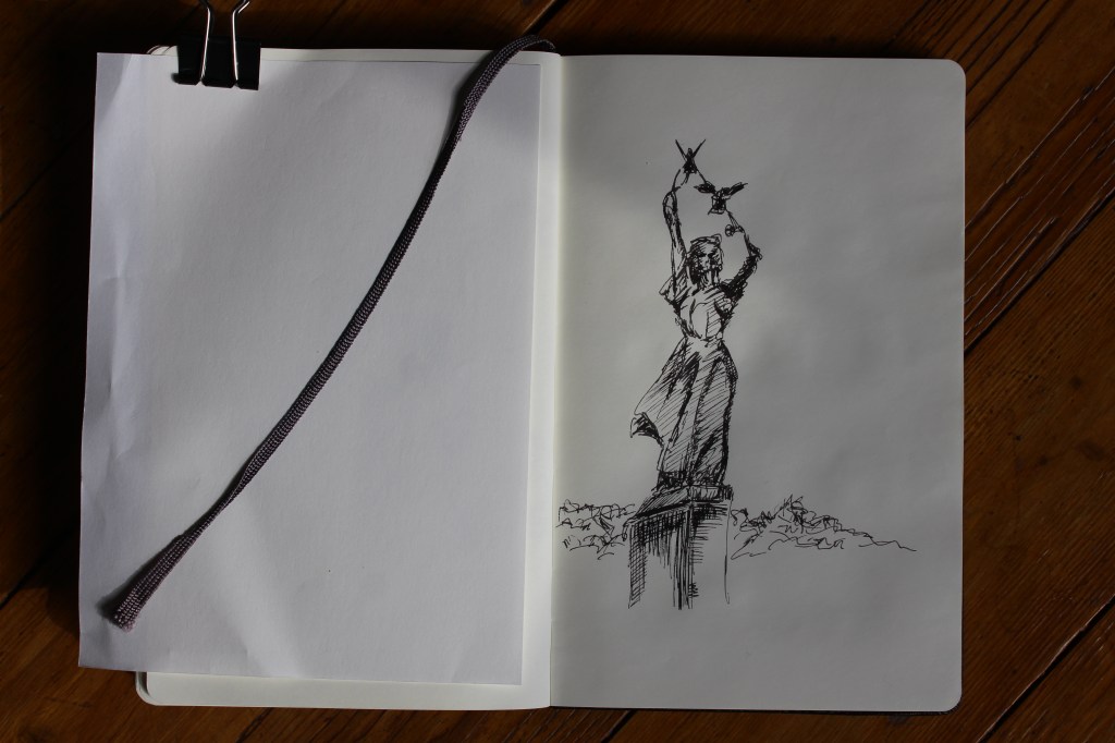Von einem Denkmal wünschte ich, dass es jetzt gesehen würde. Hoch auf einer Brücke steht es über einer Metrostation. Keines der zentralen Denkmäler der Stadt, lediglich eine Art Kunst am Bau, aber in dieser Zeit ein wichtiges Zeichen: eine weibliche Figur, aus deren Händen Friedenstauben aufsteigen. Mögen sie fliegen über den Himmel dieser Stadt, der sich gerade so verdunkelt hat, mögen sie fliegen über das ganze Land und Frieden bringen.