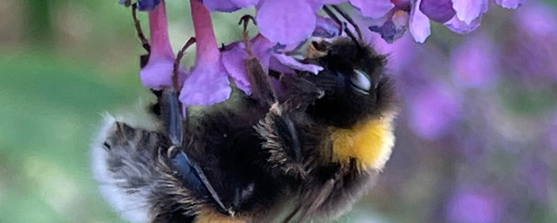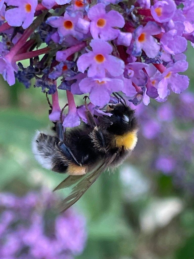Ganz dem Augenblick hingegeben ohne einen Gedanken an Vergangenheit oder Zukunft zu verschwenden, arbeitet sich die Hummel Blüte für Blüte vor. Wie beruhigend ihr zuzuschauen und solch eine Hingabe erleben zu dürfen. Wann ist man selbst je so bei der Sache? Hängt man nicht gerade den Fehlern von gestern nach, ist man in Gedanken schon bei den Aufgaben von morgen. Das Jetzt ist unserem Intellekt reine Hypothese, die unendlich dünne Linie, an der Davor und Danach aufeinandertreffen. Schafft man es, an dieser Linie auszuharren, und sei es auch nur für einen kurzen Moment, sprengt man das zeitliche Gefüge und erhascht einen Blick in die Ewigkeit.