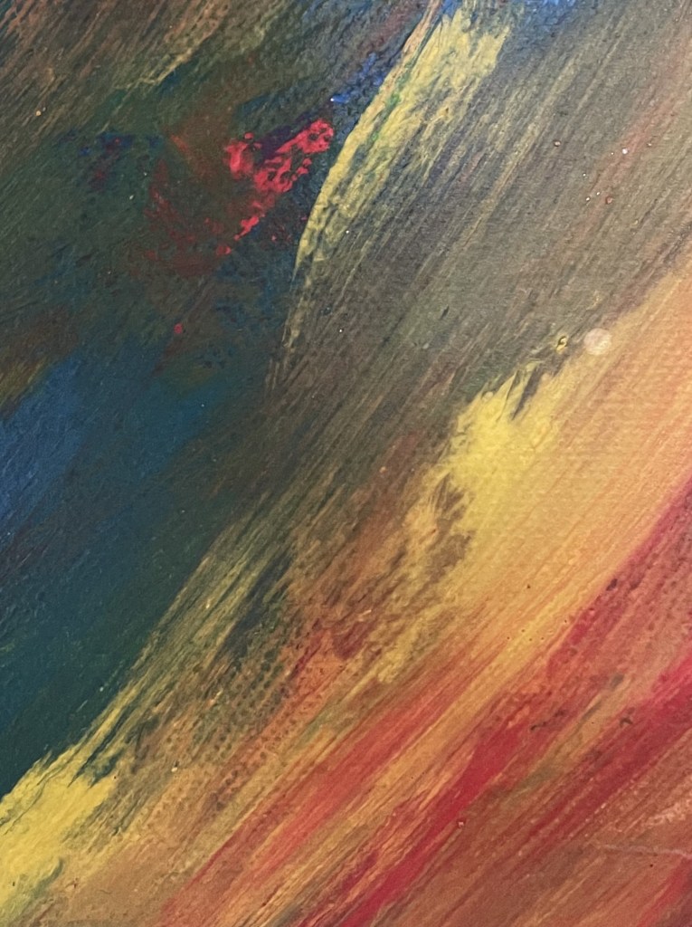 Ölgemälde betrachtend lasse ich mich gerne hineinziehen in die Struktur einzelner Striche und verliere mich so in den Details, dass mir das Bild als Ganzes aus dem Blick gerät. Dem kleinsten Klecks kann ich auf diese Weise eine eigene Bedeutung beimessen und ihn so in seiner Individualität anerkennen. Andererseits bezieht er seine Bestimmung auch wieder in Bezug auf das Ganze, in das er sich einfügt, selbst wenn ich das in diesem Moment nicht überblicken kann. So hoffe ich darauf, dass auch ich als Einzelner hineinpasse in Gottes großes Gemälde, das uns Sterblichen immer nur in Ausschnitten bekannt sein wird.