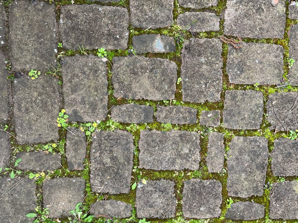 Wohl gesetzt und abgezirkelt reihen sich Steine aneinander, bilden eine scheinbar befestigte Fläche und sind doch alles andere als tot. Die Mühe des Menschen, Ordnung, Genauigkeit und Regelmäßigkeit in seine Umgebung zu bringen, wird von den Kräften der Natur verspottet. Da wird gewachsen, verschoben, angehoben, überwuchert ohne Plan und System, eine Vielzahl von Flechten, Moosen und anderen Pflanzen reißt das Kommando an sich und formt eine eigene Welt, die am Ende doch viel ausgeklügelter miteinander agiert und aufeinander abgestimmt ist, als es sich die menschliche Vorstellungskraft erträumen kann.