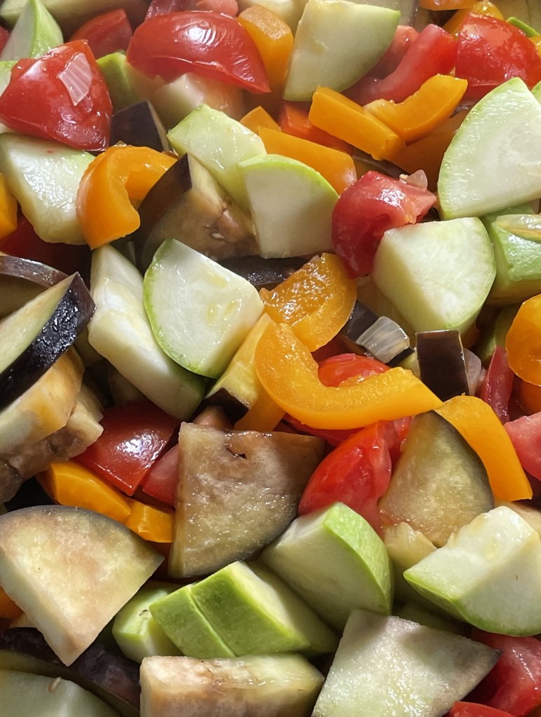 Ohne viel Aufhebens will ich eine schnelle Ratatouille rühren, doch lässt mich der Anblick des bunten Gemüses kurz innehalten. Eine Freude über diese Fülle an Farben und Gerüchen überkommt mich spontan und ich spüre der Dankbarkeit in mir nach – Dankbarkeit für die Geschenke der Natur, Dankbarkeit für all die Hände, die daran beteiligt waren, sei es beim Säen, Ernten oder Transport, und schließlich Dankbarkeit für meine eigene Fähigkeit, dies alles zu sehen. Sollten wir uns nicht öfter in Dankbarkeit üben? Wir wären glücklicher, würden wir nicht alles als selbstverständlich erachten. Auch die scheinbar kleinen Dinge wollen wahrgenommen werden, denn selbst im Alltäglichsten noch lässt sich das Wunder der Welt entdecken.