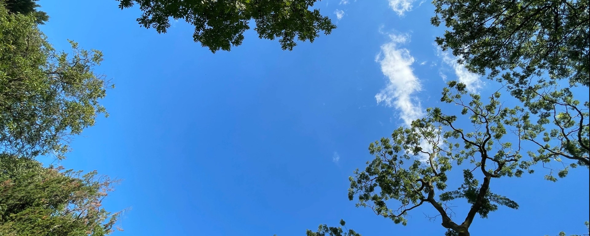 Von Bäumen schützend umschlossen öffnet sich der Blick in den Himmel: ein Ort des Friedens auf Erden. Die Schatten spendenden Riesen beugen sich über mich wie wohlwollende Väter, während mein Blick weiter hinaufgeht, durch sie hindurch in die Unendlichkeit. Schatten und Licht treffen im angenehmsten Verhältnis aufeinander und geben mir ein Gefühl von Stimmigkeit in einer sonst so zerrissenen Welt. Hier wird der philosophische Olivenhain spürbar.