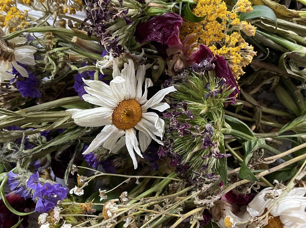 Wenige heiße Sommertage genügen, um das, was gerade noch üppig blühende Lebensfreude verschenkte, zu ein an Vergänglichkeit gemahnendes Häuflein zu schrumpfen. Ist die Zeit der Blüte vorbei, sehnt man sich vielleicht nach vergangener Frische oder hofft auf kommendes Leben. Aber hat nicht jede Zeit ihr Gutes? Selbst in ihrem vertrockneten Zustand schenken uns die Blüten noch eine Ahnung von Schönheit und erinnern so daran, dass Jugend nicht alles ist.