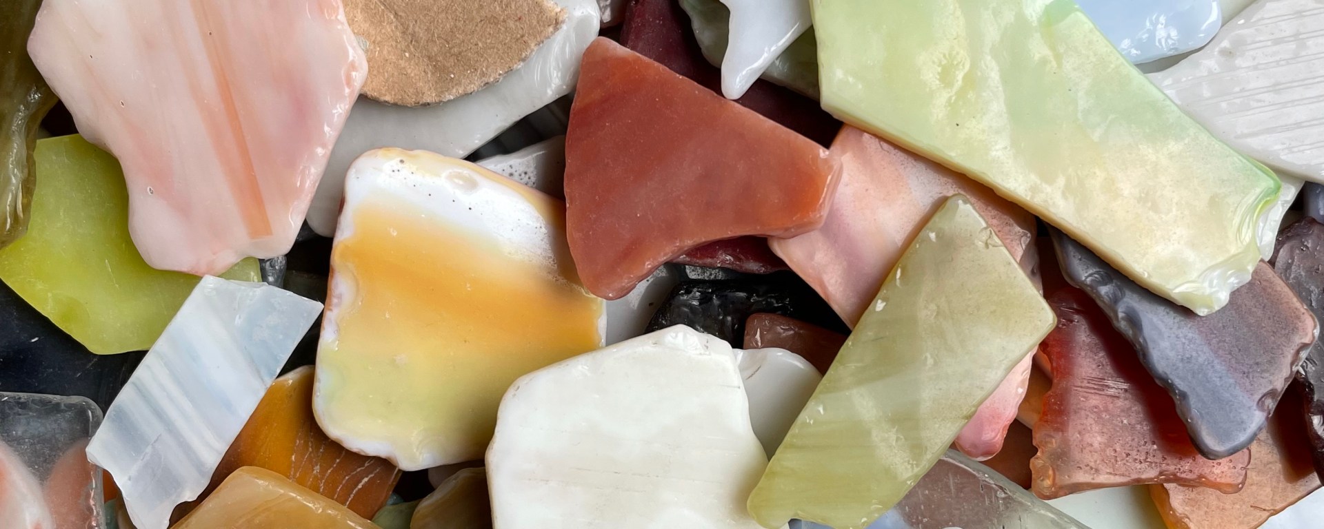 Da liegt es in Scherben, das Glück. Bunte Mosaik-Glassteine, die nur darauf warten, zu etwas Größerem zusammengesetzt zu werden. Doch ehe es soweit ist, sollte man jede einzelne Scherbe in die Hand nehmen und sich freuen. Sich freuen über die Möglichkeiten die darin stecken und die verschiedenen Formen, Farben, Strukturen in ihrer Vielfalt genießen. Jede einzelne Scherbe hat es verdient, wahrgenommen zu werden. Jede wird ihren Platz finden und zusammen mit den anderen ein Bild ergeben, ein Ganzes. Gleich uns Menschenkindern, die wir die Teile des großen Welt-Mosaiks sind.