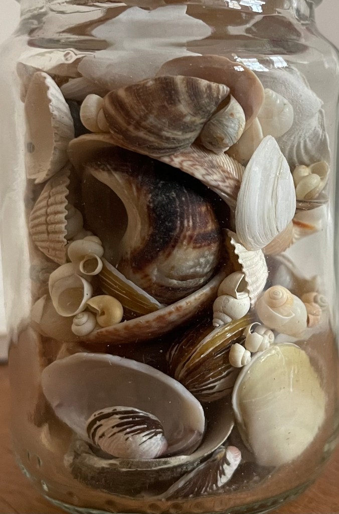 Gleich dem Eichhörnchen, das jetzt für kalte Wintertage vorsorgt, lege ich mir einen Schatz an für die dunkle Zeit. Einmachgläser voll Erinnerungen, Fundstücke aus unbeschwerten Tagen, die mich zurücktragen an den sommerlichen Strand. Fröhliches Lachen im Ohr, warmen Wind auf der Haut, träume ich mich zurück. In jeder Muschel, jedem Schneckenhaus liegt verborgen eine Geschichte, eine ganze Welt. Wenn man ganz still wird und sich darin versenkt, erzählen sie davon und machen das Dunkel vergessen.