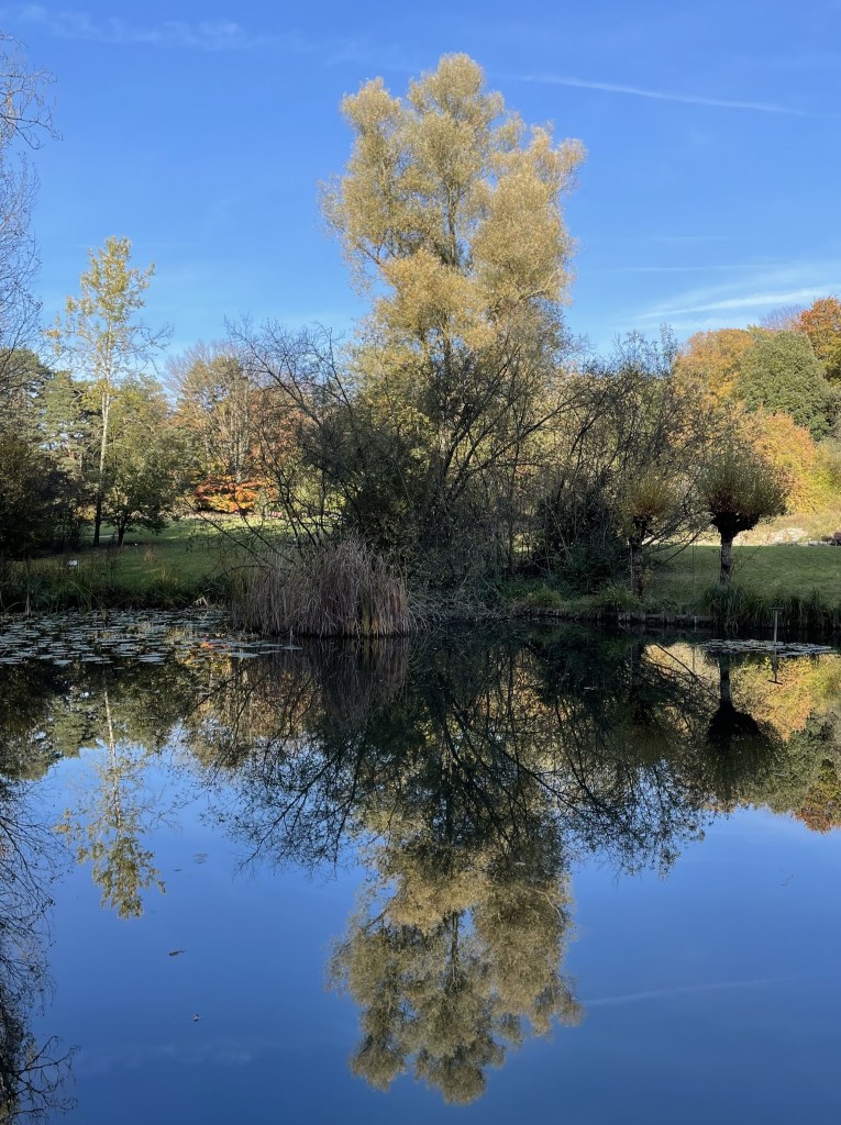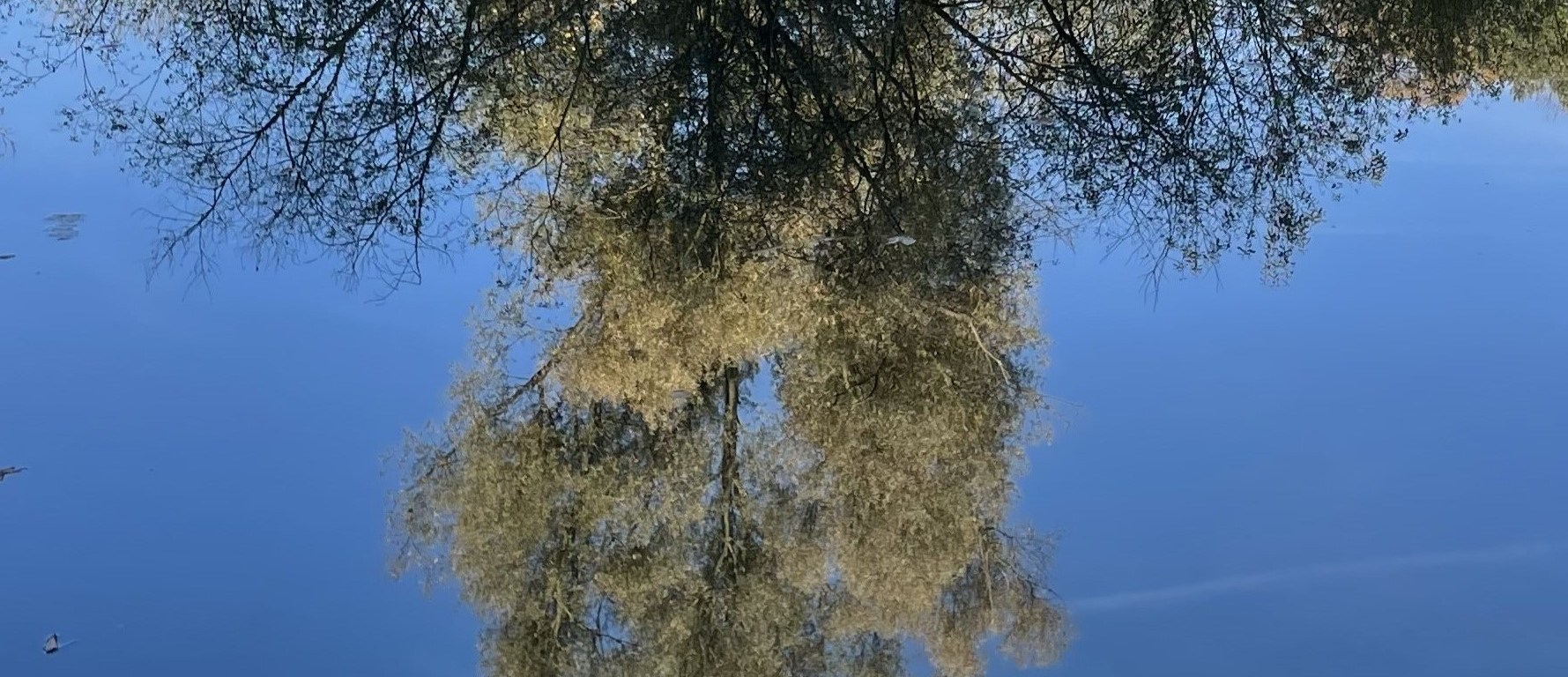 Oben und unten, Himmel und Erde – in genauer Übereinstimmung liegt alles in zweifacher Weise vor uns. Blicken wir auf ein ruhiges Gewässer, schenkt sich uns die Welt doppelt. Statt sich nach dem fernen Himmel zu sehnen, haben wir alles in fast greifbarer Nähe zu unseren Füßen liegen. Sogar kleinste Pfützen eignen sich zu diesem Spiel. So zeigt sich uns der Abglanz des Himmels oft unvermutet in den unscheinbarsten Dingen in unserem Alltag, selbst im trübsten Sumpf ist noch eine Ahnung des Höchsten zu entdecken.