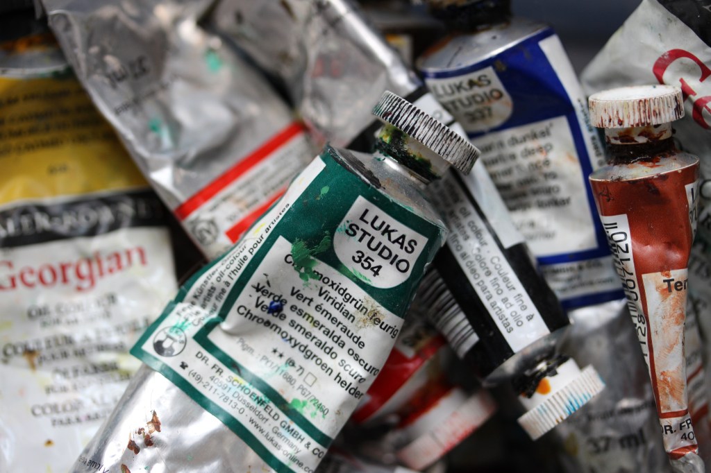 Aus Unordnung und kreativem Chaos entstehen sorgfältig komponierte Werke. Aus dem Allerlei wird eine Einheit. Der Künstler muss einem Schöpfer gleichen, der jedem Farbtupfer wie einem Individuum seinen Platz zuweist, der sortiert und ordnet. Muss Ausgleich schaffen, indem er Gegensätze aufeinander abstimmt. Muss an manchen Stellen kontinuierliche Übergänge schaffen, an anderen scharfe Kontraste wirken lassen. Und manches, was im Detail unstimmig erscheint, wird sich aus Abstand betrachtet zusammenfügen. Ganz so wie in unserem Leben.