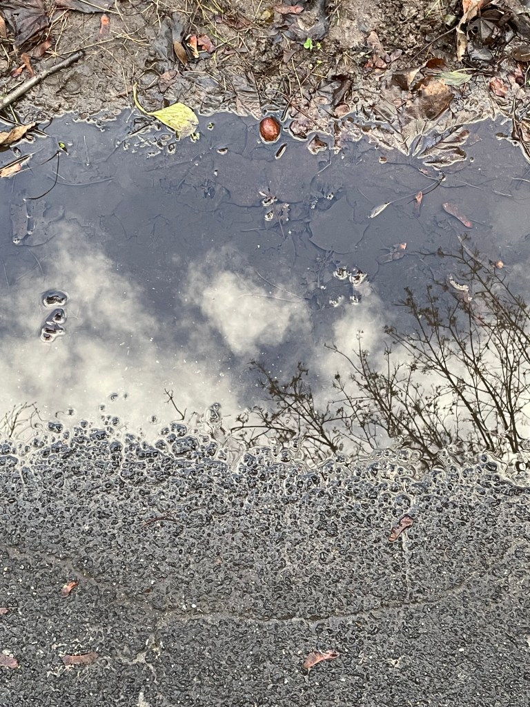 Beim Spaziergang über Regenpfützen einen Blick in die Unendlichkeit getan. Selbst zwischen all dem Matsch und Dreck dieses Lebens ist ein Stück Himmel zu entdecken, wenn man Augen und Herz dafür öffnet. Dann schaut man im Niederen das Hohe, im Kleinen das Große und alle irdischen Dimensionen verlieren ihre Gültigkeit. Dieser Blick wird den Menschen mit Weihnachten geschenkt.