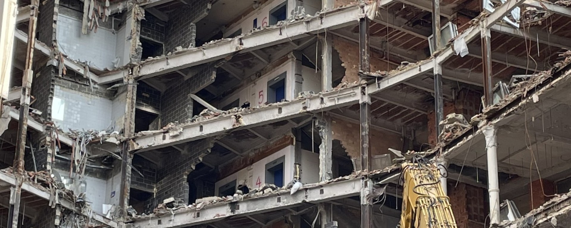 Als Kind hatte ich eine Phase, in der ich mit Vorliebe Querschnitte von Häusern gemalt habe. Jeden Tag neu, jeden Tag eine andere Einrichtung, andere Menschen, andere Geschichten. Die Freiheit in der Gestaltung war viel größer als das Spiel mit einem Puppenhaus jemals hätte bieten können. Oder auch aus Lego – Stein für Stein Stockwerk über Stockwerk gestapelt, wieder abgebaut und wieder neu zusammengesetzt. Ein Spiel der Fantasie, in der jede Welt nur so lange interessant war als sie neu war. Jetzt stehe ich vor diesem Abbruchhaus und frage mich, wie grausam ich als Kind gewesen war. Herzlos Leben auszulöschen, das ich selbst mühevoll aufgebaut hatte. Familien erstehen und wieder verschwinden lassen. Auch in diesen Mauern stecken Erinnerungen, die nun dem Vergessen anheimgegeben werden. Allen Blicken freigegeben. Vergänglich.