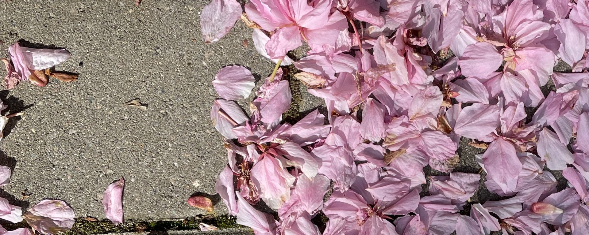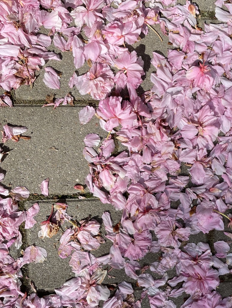 Gerade noch strebten des Frühlings Blüten ins Leben, schon liegen sie verblichen und schmutzig, verweht und verwelkt. Wie kurz die Zeit der Blüte doch ist! Ein trauriger Anblick, der an Tod denken lässt. Aber was wir hier als Vergänglichkeit wahrnehmen, ist in Wahrheit der Weg zu neuem Leben. Langsam wächst nun die Frucht heran, braucht Zeit zur Entwicklung. So wie sich am Baum erst nach dem Abstoßen der Blütenblätter Früchte ausbilden können, reifen auch wir und tragen Früchte, wenn wir die Blüte der Jugend hinter uns gelassen haben.