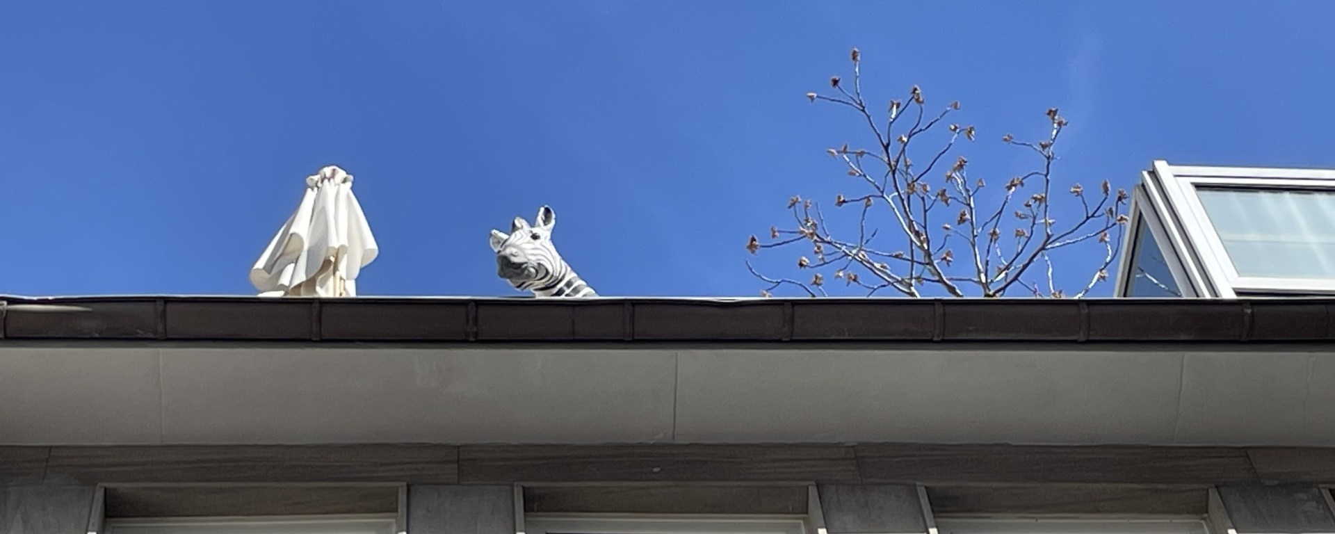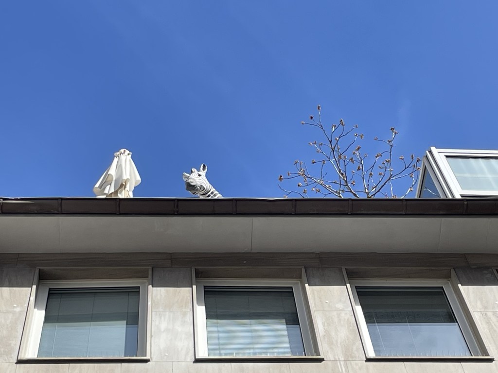 Statt sich im Alltag immer nur auf das Ziel zu fokussieren, sollte man ab und zu einen Blick in neue Richtungen wagen. Das Nebensächliche am Rande oder das Ungewöhnliche von Oben kann ein wenig Poesie in den gewohnten Trott bringen. Neue Perspektiven eröffnen neue Möglichkeiten. Und dann findet man die zufällige Begegnung von Nähmaschine und Regenschirm auf einem Seziertisch nicht mehr unwahrscheinlich. Genauswenig wie die Begegnung mit einem Zebra auf einer Dachterrasse. Man muss dem Surrealen nur Raum geben, dann findet man es auch.