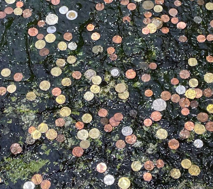 Golden, silbern und kupfern glitzern die Träume und Sehnsüchte der Menschen im tänzelnden Wasser. Kaum ein Brunnen an tourismusträchtigem Platz, der heutzutage noch von Münzwürfen verschont bliebe! Wassergottheiten mit Gaben zu besänftigen mag in alten Zeiten als sinnvolle Handlung angesehen worden sein, aber was bringt Menschen heutzutage zu ähnlichem Tun? Steckt dahinter der Wunsch nach Rückkehr, wie es für den Trevi-Brunnen reklamiert wird, oder ist … Investition weiterlesen